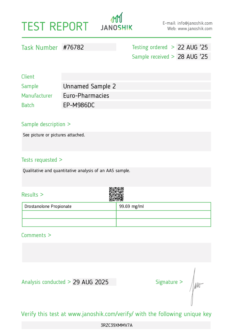 Drostanolone Propionate (15 ml) - Lab test